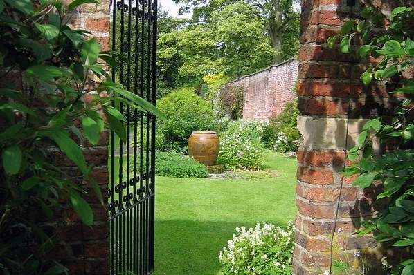 The gardens that surround Nunnington Hall include a walled garden featuring herbaceous borders, roses and an organic vegetable plot.
