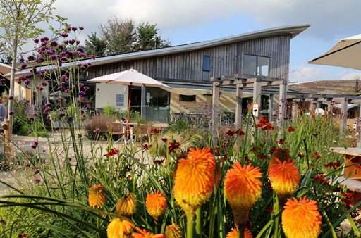 So, when you walk round to the front of the building and find a large, decked terrace, with expansive views across the stunning Devon countryside and a quaint, rustic café, it comes as a big surprise.