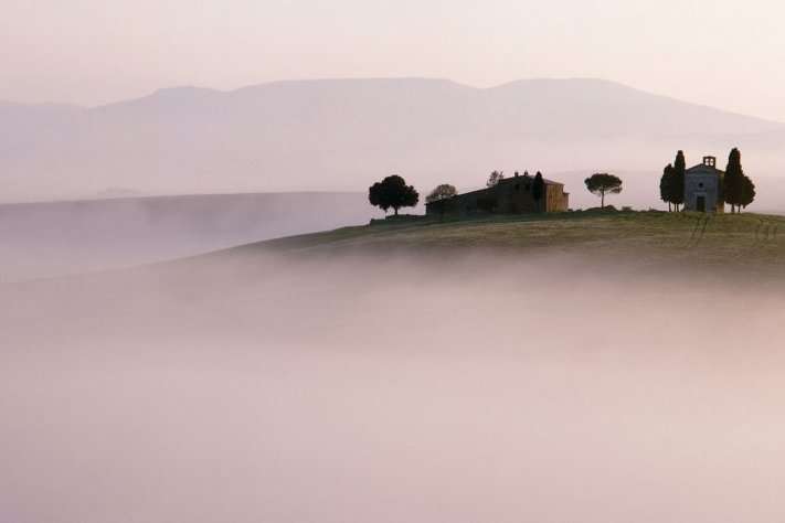 Located a short walk uphill from the resort, the estate overlooks the cypress trees and rolling hills of the Val d'Orcia and valley that's also a UNESCO World Heritage site.