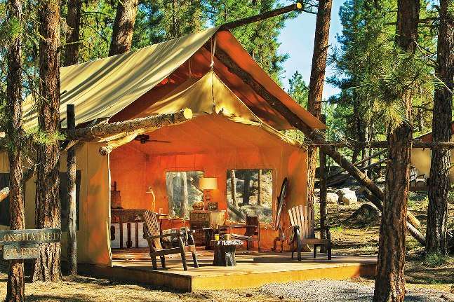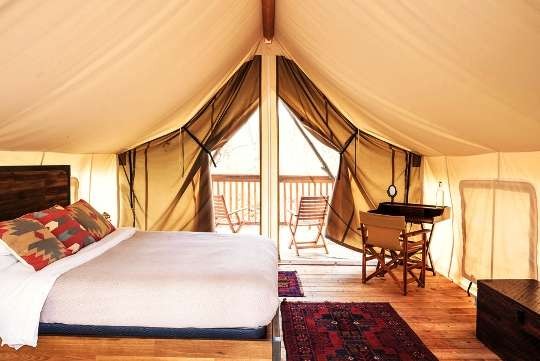 The Tuolumne County location is on an 85 acre area of sequoia trees and meadows and features 90 safari-style tents and tented lounge areas.