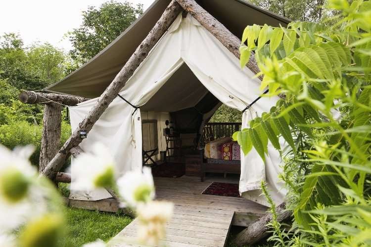 Set in 70-acres of woodland in Upstate New York, Firelight Camps is a getaway for nature-lovers looking to hear the rustling of tree branches and bird song.