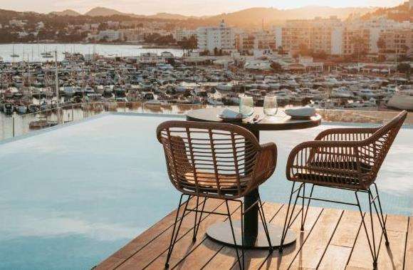 Located in the Santa Eulalia region, the hotel has 145 rooms and suites, many with views of the Mediterranean.