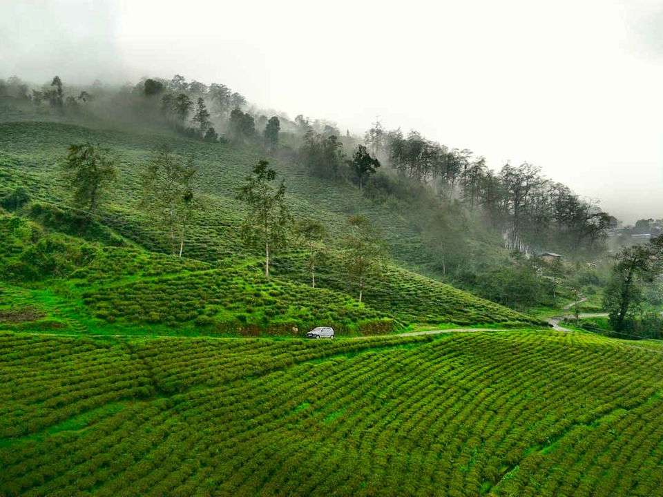 I started walking through the tea plantations shrouded in mist, getting occasional but disinterested looks from the tea garden workers. Loitering through small, winding dirt roads within the plantations in glorious loneliness with only the misty fog and the occasional sound of the elusive chirping cicada for company was an exhilarating experience. Lost in my thoughts, trying to find my way through the hanging veil of clouds, I suddenly stumbled upon a pebbled path leading to a stairway up the hill. Rows of prayer flags fluttered in the distance and the hill was thick with a dense canopy of oak, chestnut, maple, alder and sal trees. The prospect of a small uphill trek to some beautiful, little-known place made me feel like an eager kid waiting for his turn to hop onto a carousel. I slowly climbed up the stairs, with the sound of my laboured breath keeping time with the crush of freshly fallen leaves under my feet and carefree chirping of birds and the buzz of insects in the forest. The stairs soon ended at a steep dirt road heading further up. A hint of incipient rain made me return to my hotel, where Iearnt that I'd been trying to climb up to the village's cemetery!
