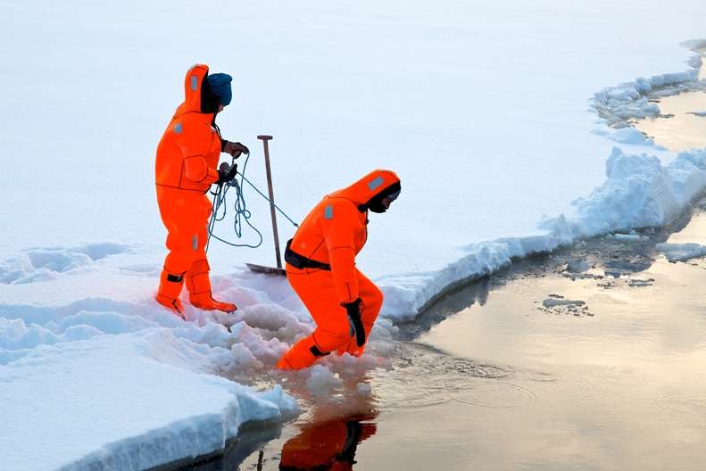 After a full safety briefing, those taking part are dressed in survival suits, allowing only their hands to get wet, each suit is attached to a guide, before lowering themselves into the freezing waters.