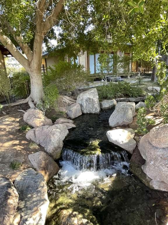 This is a place to meditate, reflect and re-center. All you hear is the breeze and the water. The gardens are like living museums. Each blade of grass, every manicured tree, every cascading waterfall has its own story bringing forward a call to be at peace. Our guide explained that each plant is chosen for its ability to not only survive in the desert but to evoke images of gardens in Japan. Even the boulders used to create the stream were hand-picked from hills near Congress with an idea of where they would be placed in the garden. The garden is meant to invoke images of four specific regions in Japan: mountain forest, stone beach, grassland and woodland.