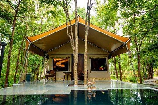 Located in the Indian jungle known as the tiger heartland, the Hidden India Mahavan is sustainable luxury glamping where 'ancient cultures and pristine nature' come together.