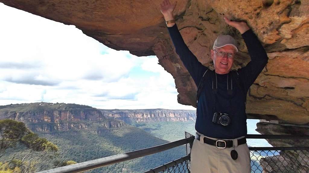 Back on our tour bus for an additional 60-minute ride west, we came to the beautiful Blue Mountains. They get their name from the natural blue haze caused by the eucalypt trees. The trees secrete oil drops and when mixed with the sunlight and vapor result in a beautiful blue hue.