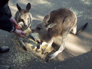 Emi and Hiro enjoyed feeding the animals along the sidewalk. The park includes wombats, kangaroos, wallabies, birds, snakes, Crocs, and lizards. We could not get a picture of the Tasmanian Devils, as they stayed hidden in the brush.