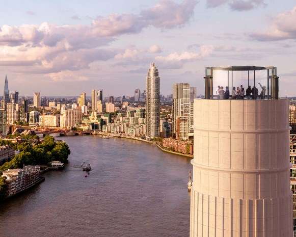 Lift 109 takes guests up the inside, and out the top of, of one of the chimneys for 360-degree views of London's skyline