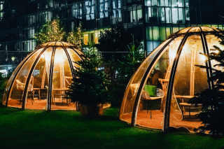 The Glass House, allows visitors to warm up with drinks, ride on the helter-skelter or take a private hire igloo.