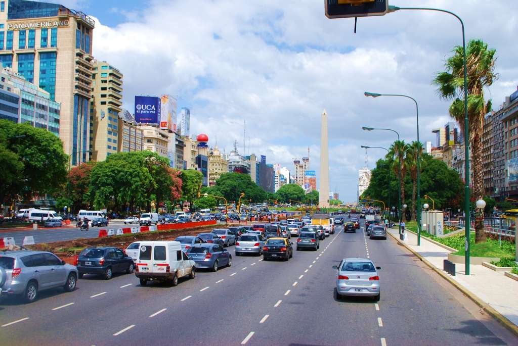 Take care crossing the terrifyingly wide and traffic-dense boulevards, particularly Avenida 9 De Julio, claimed to be the widest avenue in the world. Its name honours Argentina's Independence Day, 9 July 1816. The avenue has seven lanes in each direction plus two lanes for turning into the side streets, a total of 18 lanes. Crossing it on foot is a major undertaking requiring two or three traffic-light cycles and corresponding stops at pedestrian islands along the way.