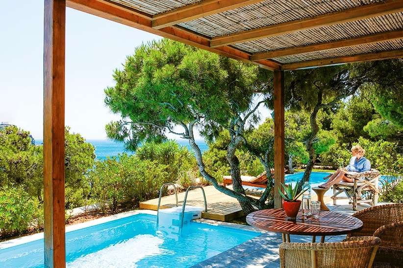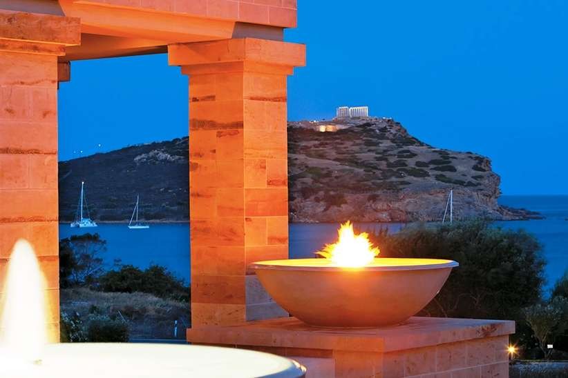 Overlooking the ancient Temple of Poseidon, Cape Sounio seeks to emulate the splendour of ancient Greek architecture amid gardens of bougainvillea and jasmine flank arcaded buildings and hilly grounds.The 150 terracotta-shaded bungalows and luxury villas sit among stone-paved paths and olive trees.