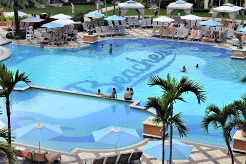 As such, we are ensconced in an oceanview suite on the fifth floor of the Italian Village adjacent to the massive palm-treed main pool complete with swim-up bar and oodles of swim-up tables.