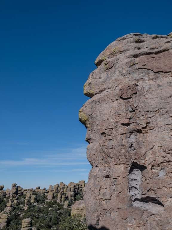I had a side trip planned to Chiricahua National Monument. The route snaked through terra-cotta canyons and Pinyon Pine. For a while, the drive to 7,000-foot Massai Point looked no different from the last forty miles of cliffs, but the difference became apparent as I crested the summit. Standing like the Moai of Easter Island, the weatherworn rock formed sentinels in this remote canyon of Arizona.