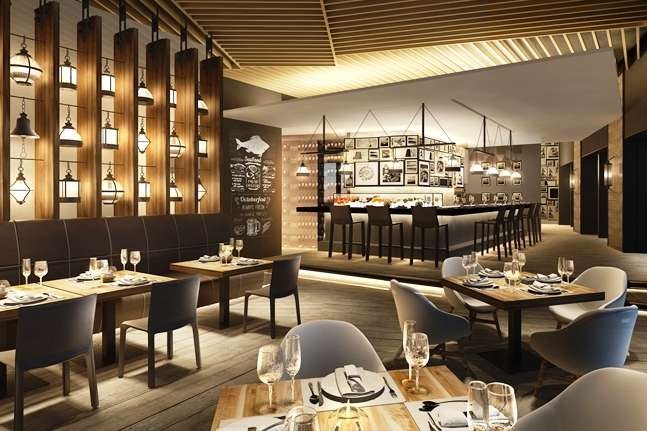 There are four restaurants and the 40 Sky Bar & Lounge, located on the 40th floor, which offers live music and cocktails.