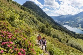 Summer activities include swimming and sailing on Lake Davos, hiking and mountain biking.