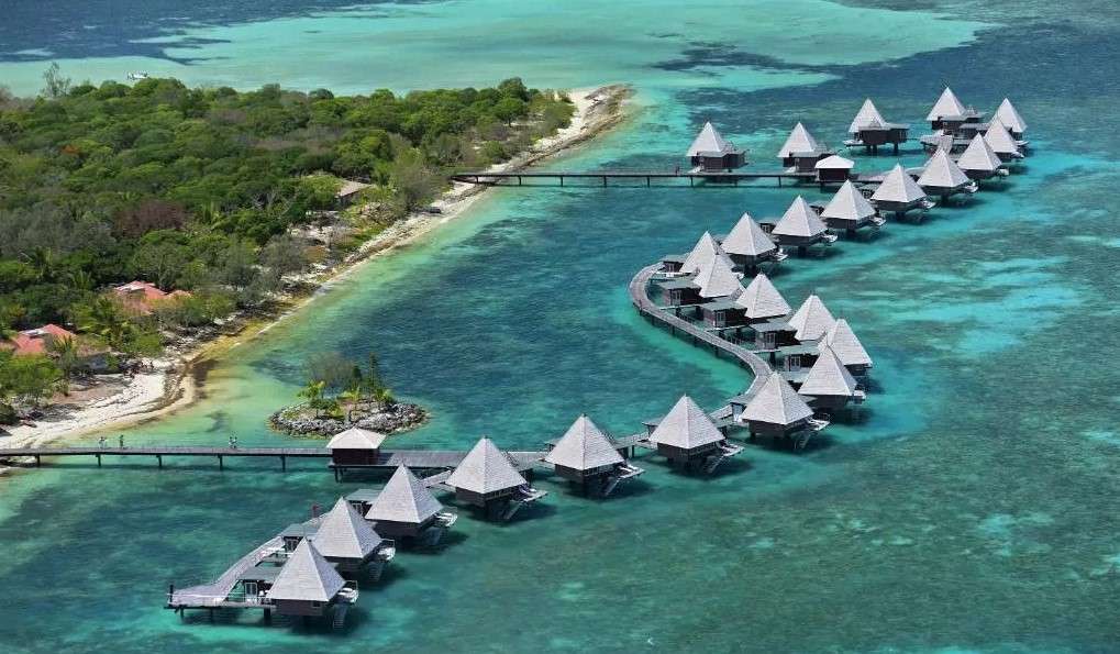 A true haven of tranquillity, this location has a number of pluses: a 200-hectare marine reserve, a turquoise lagoon listed as a UNESCO World Heritage site, overwater bungalows – usually found only in French Polynesia – and white sand beaches with natural surroundings.