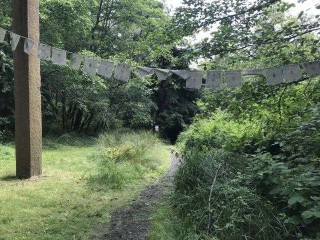 My husband and I came a few minutes early before our guide and host Chuck Pettis was to meet us. Green everywhere we looked. Magnificently planned, yet wild and unpredictable.As I jumped out of the car and stood at one of the two trail heads, a butterfly floated over my right shoulder as prayer flags ruffled gently in the wind showing me the way. If you believe as I do that butterflies represent peace, harmony and the circle of life, then you would know, as I did right then and there, I had arrived at the right place.