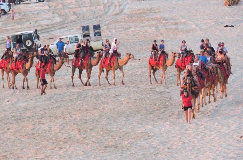 Camel safaris are firmly established in Broome and a camel ride is one of the most popular visitor activities. At least three companies (look for the different livery colours) offer tours along Cable Beach and you have the choice of morning, afternoon or sunset rides.