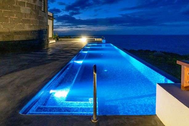 Facilities include four rooms, four bathrooms, a roof terrace, a dramatic infinity pool, a 36m high watchtower and Canary-Islands garden.