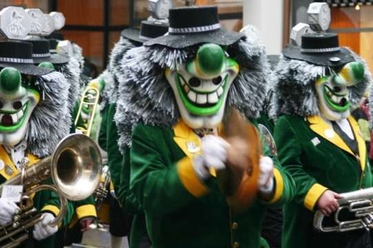 The cliques and Guggenmusik players march in the cortège, with the parade following a set route through the city centre.
