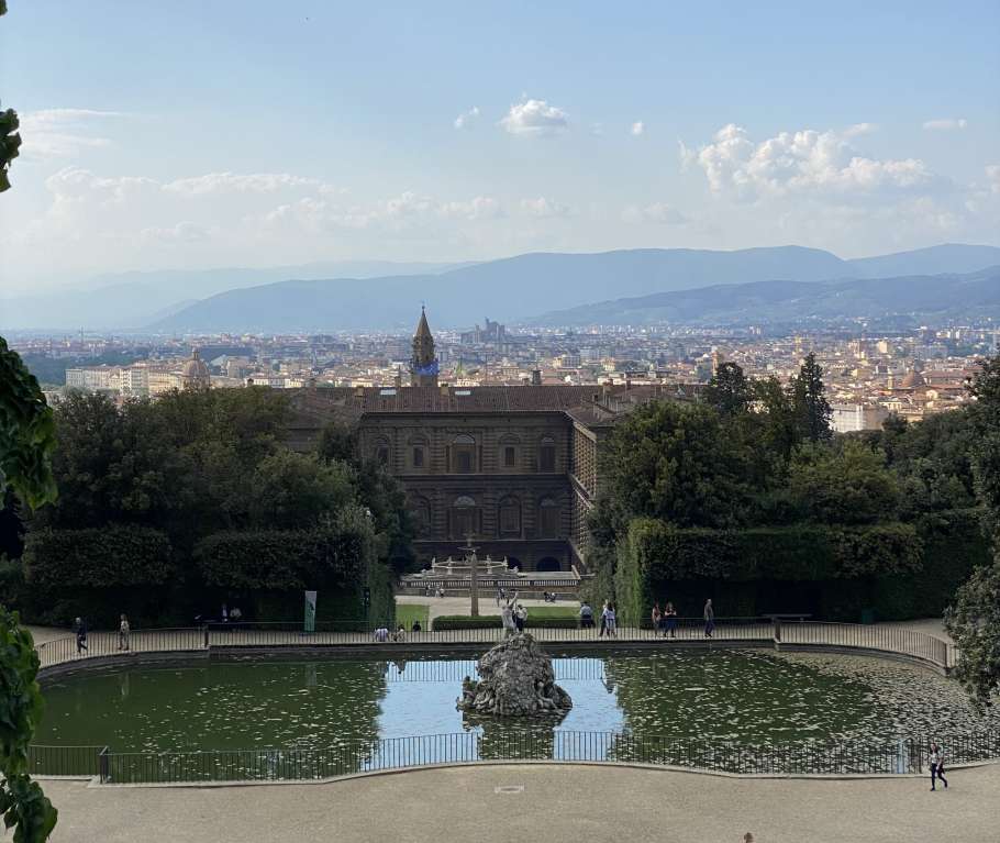 The amount of wealth displayed in the chandeliers and carving on the ceiling at the Pitti Palace is shocking. I wondered if the Medici family stayed on the second floor of the residence and gazed out the windows of the garden or actually ventured to the Boboli Gardens below. It would have been a long walk each day just to travel from one end of the palace to the gardens.