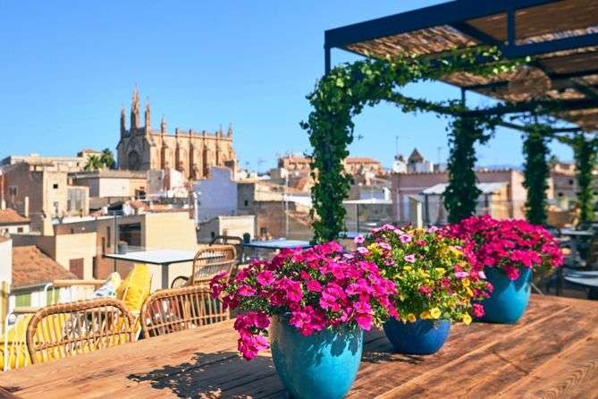 The hotel's Cuba Sky Bar on the top floor is open offers a panoramic view of the old city and the Bay of Palma.