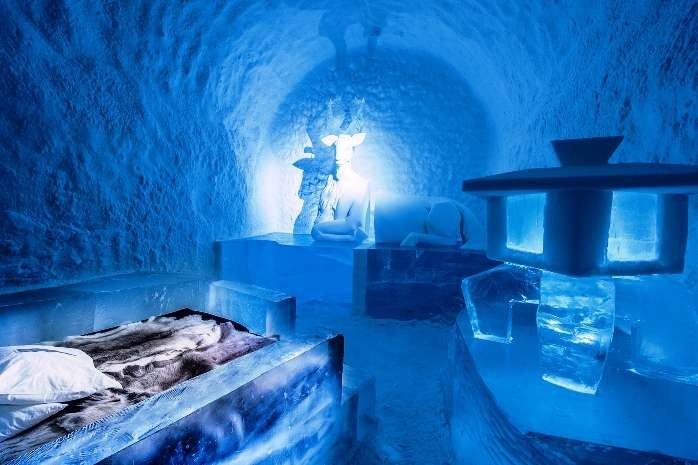 ICEHOTEL opened in 1989 and is beside a hotel also an art exhibition with ever-changing art out of ice and snow.