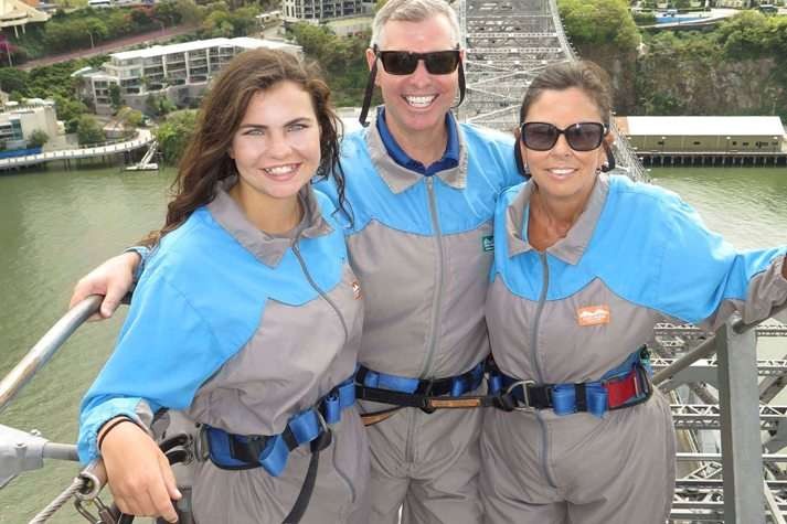 3 : Grace, Steve andKerry MacNaull 80 metres above the Brisbane River on the Story Bridge