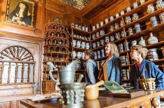With its woodwork, starry vault and inlaid floor, classified as a Historic Monument, this 17th century apothecary is considered one of the most remarkable in France.
