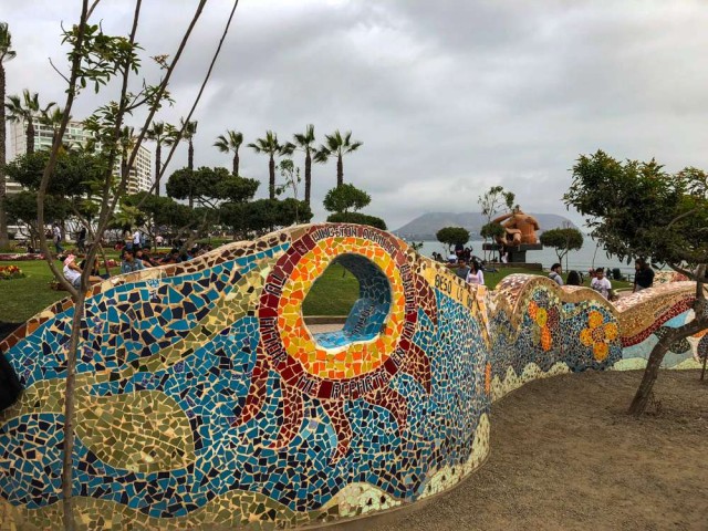 Overlooking the Bay of Lima along a coastal strip you'll find the romantic Parque del Amor. The Gaudi-esque mosaics of undulating walls seem to take their shape from the waves in the background and protect visitors from a heavy shore breeze. Central to the love theme is a Delfin sculpture El Beso, an entangled couple caught in a rapturous embrace. The area is especially popular at sunset.