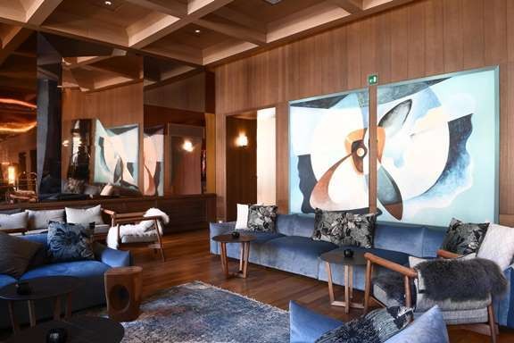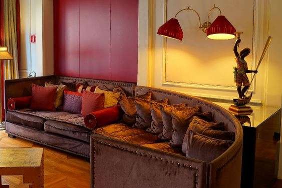 The hotel's interiors display a collection of artworks, including classic paintings, contemporary sculptures, and curated installations that reflect the rich artistic traditions of the region.