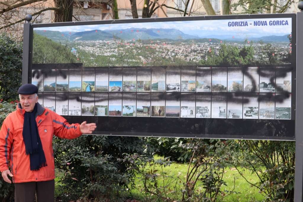Rudel pointed at a billboard with the town map and the legend in both Italian and Slovenian. The Slovenian part of the legend was sprayed with black ink to the point of being unreadable.