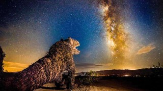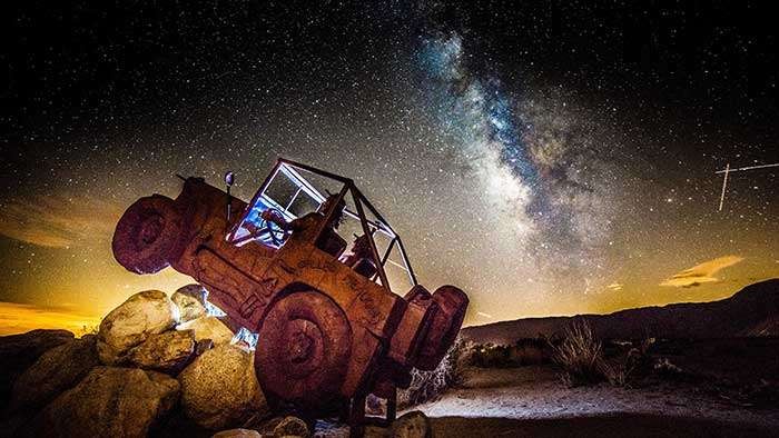I'm at one of the darkest places on earth, according to my map. It's a little scary, especially while visions of coyotes, scorpions, and roving gangs of desert hares dance in my head. I'm here to photograph monsters. It isn't my imagination. I saw them as I drove in during the day. Standing as tall as two stories, I could make out their rust-colored silhouettes against the arid sand.