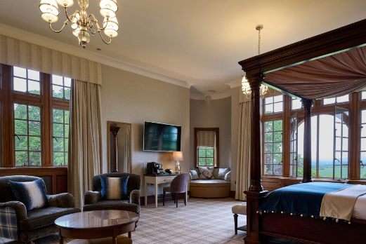 A Scottish baronial hotel in 365 acres of private land, it has 34 bedrooms and suites and an award-winning spa and restaurant.