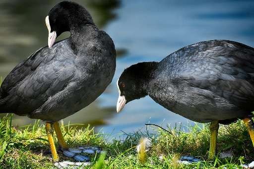 While leaving the Anderton Marina we chug past a trio of coots perching on a bobbing log, giving little outward sign of making a surprise attack.