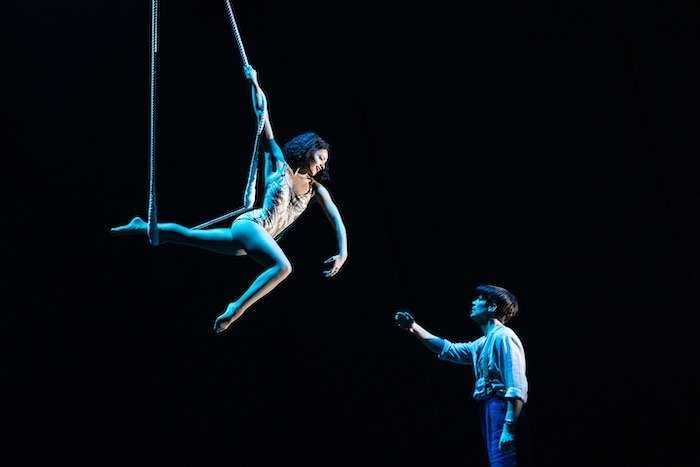 It feels like the casting directors lured every overqualified Cirque du Soleil performer to show their stuff We see them fly up and down ropes and get caught after being thrown before we are able to catch our gasping breath.Fast moving always, the dancing happens on multiple planes, with especially graceful and flawless aerial dancing on silks tightly woven into the spectacle and used to great effect to tell the story.The music is not as memorable, but there may be a few songs that make their way into the torch singer's playbook.