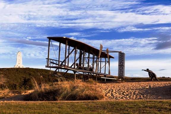 Orville, the first man to fly a motorized airplane in 1903, accomplished the world-changing feat at nearby Kitty Hawk.