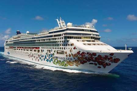 Norwegian Gem, 15 decks high, 1,000 ft long, weighing 93 and a half tons, was built in 2006 to carry 2,394passengers.