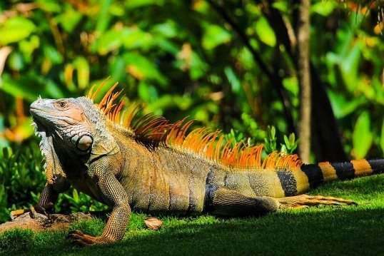 Black and green iguanas who can grow up to 5/6ft long and lay 50/60 eggs a year, roam wild in the Animal Sanctuary though elsewhere they are a delicacy eaten by the locals and known as chickens of the trees.
