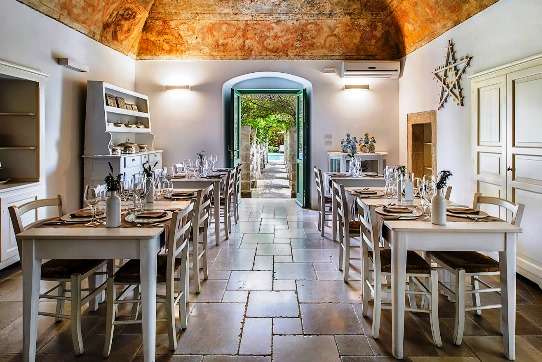It has been restored under the supervision of the Ministry of Cultural Heritage, with the majority of the rooms in the main building featuring original 16th century vaulted ceilings and art work, typical of old Salento architecture.