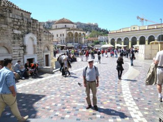 Plaka is clustered around the base of what is probably Athens' most recognisable site, the Acropolis. The Acropolis has been inhabited since the Neolithic period and is now so popular as a tourist attraction that visitor numbers have been capped at 20,000 a day since September to help preserve the ancient structures. Probably a good thing, but that's still a lot of people. The ever-present cranes and scaffolding don't seem to put visitors off at all, but the installation of a lift and some concrete pathways in recent years has drawn local criticism.