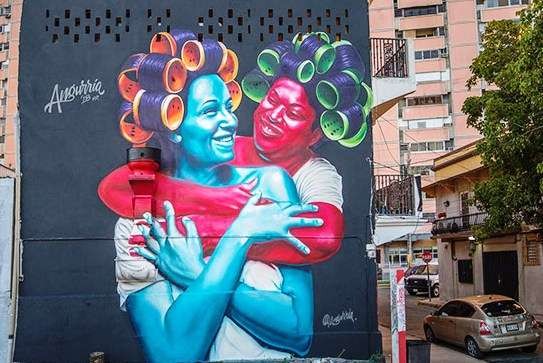 Puerto Rican artist, Alexis Bousquet, founder of the Santurce es Ley street art festival, and local artists have identified wall spaces throughout Puerto Rico.