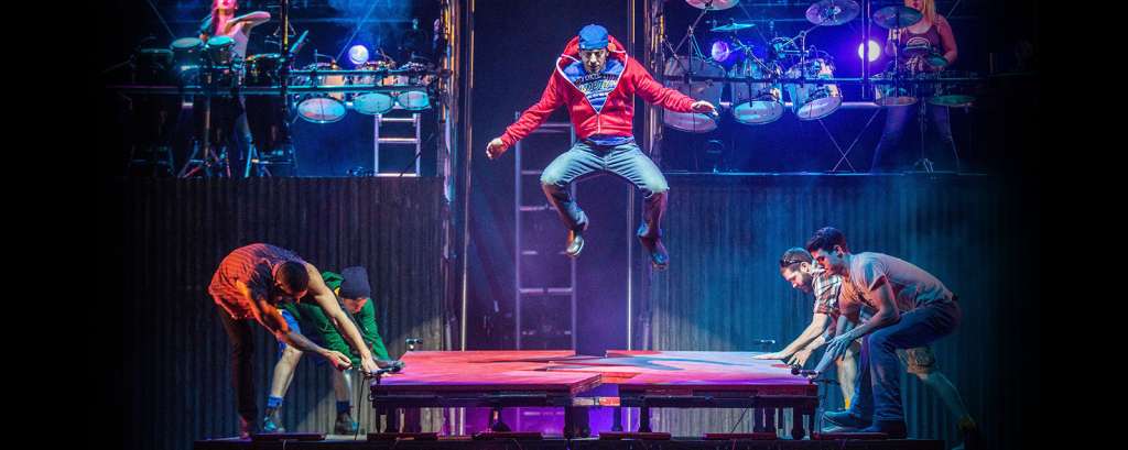 Opening scenes of sprinkles and splashes of water had the audience in hysterics as it depicted human nature in a lighter hearted manner. A building construction site gives performers the extra boost to tap to completion, whilst creating their equivalent of The Harlem Globetrotters with handy basketball tricks.