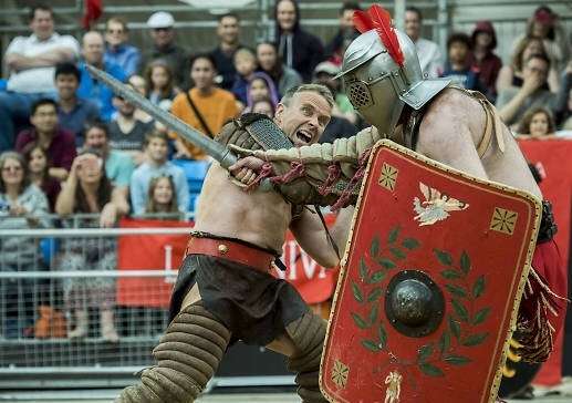 In the busy epicentre of Moorgate, Central London is Guildhall yard that plays host to the Gladiator Games which depicts the blood, sweat and tears that fighters in the Roman era (around AD 50) put their bodies through to stay alive.