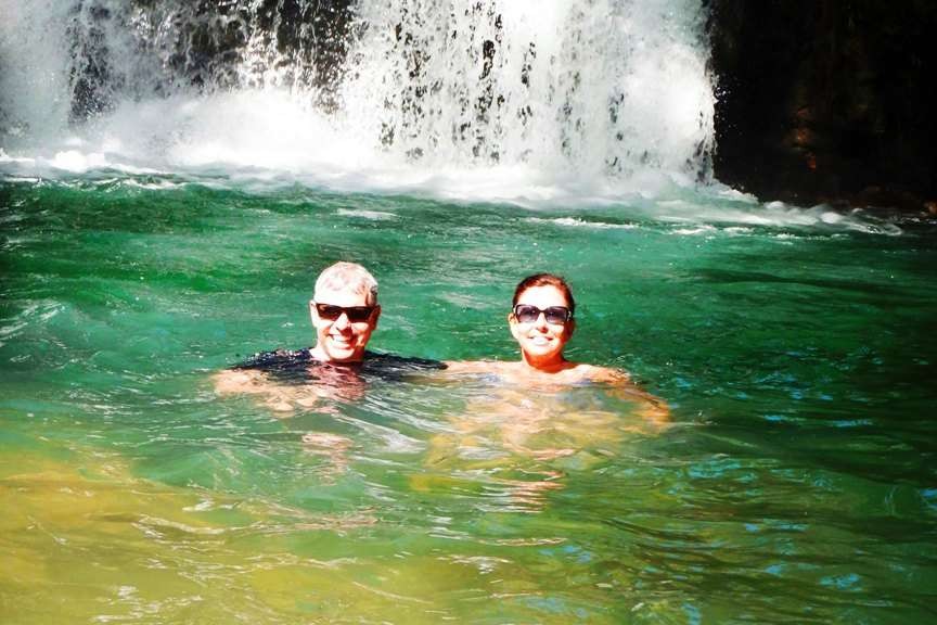 The only time we venture off the resort is to climb the spectacular nearby six-tiered YS waterfall with lifeguard-guide Norman Roberts.
