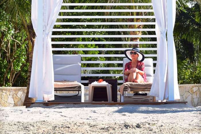 When we do decide to emerge from our over-water exile, the resort has an exclusive, private cabana on the adjacent beach just for us.
