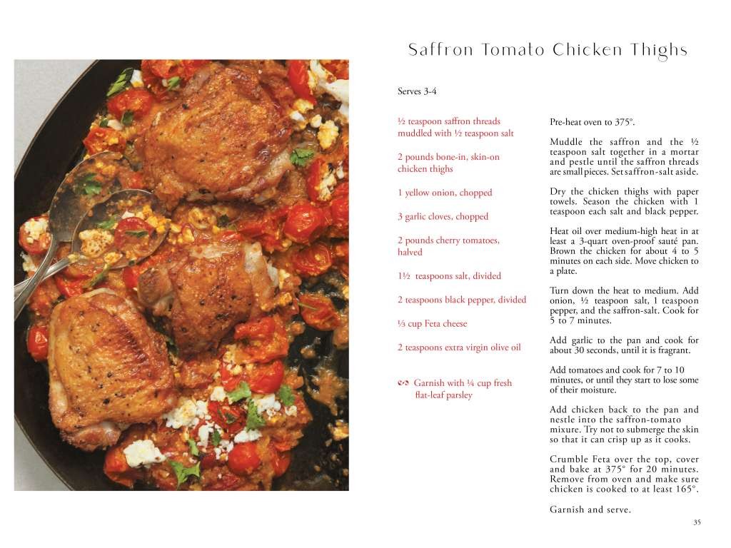 Take this book for a three recipe taste spin. Enjoy the delicious drive with three new recipes: Blooming Saffron Tea, Saffron Star Bread & Saffron Chicken Thighs.