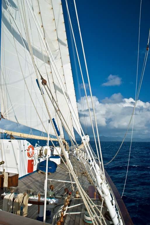 The jungle covered mountains were surrounded by the early morning mist as the island of Moorea came into view.The wind was blowing across the deck of the squared rigged barkentine, the Star Flyer. I felt I had stepped back in time to the era of sailing ships
