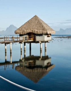 The morning sun woke me early. The beautiful turquoise waters of the shallow bay lapped against the pylons of the thatched roofed huts decorating the shoreline. These were rooms you could rent right over the water. I wandered along the shoreline taking pictures of the coral reefs and nearby islands. My morning was taken up by a tour of this largest of the islands of French Polynesia. It is shaped like a large figure 8 with the peaks of the volcanoes that formed the island at the center of each loop. The smaller loop, which I toured, is called Tahiti Iti. The jungle covered the hillsides as the narrow road followed the shoreline revealing hidden beaches covered in palm trees. The highlight was a visit to the Paul Gaugin Museum. This renowned artist made these islands famous with his paintings.